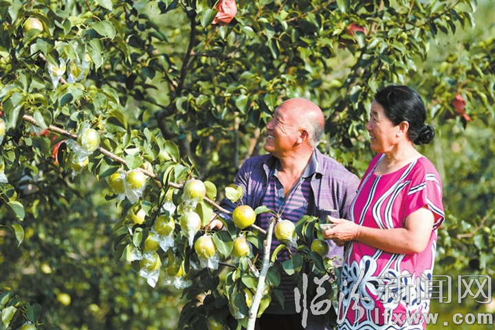 梨园内,村民们正采摘着鲜嫩的梨果。一首首山歌、民歌唱出了果农丰收的喜悦,映照出“村强、民富、景美”的大好“钱”景。58岁的刘春平开着农用三轮车穿梭在自己的果园里,他高兴地说:“我们现在的生活全靠梨园,在县领导的扶持下,每年收获的梨果根本不愁卖,商户们直接到地里就收走了。”