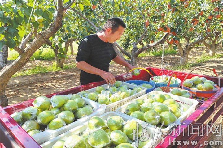 沿着柏油路驶向龙泉镇上留村的智慧果园示范基地,绿意盎然,生机勃勃。缀满枝头的玉露香梨让人垂涎欲滴,果农们忙着采摘、挑运、分级、装箱,梨园里处处呈现出一派丰收的景象。手挎篮子的游客们涌入采摘园,徜徉在梨树下,或采摘、或拍照、或品尝,与农户共同分享丰收的喜悦,不时连连赞叹:“不愧为中国大美梨,香脆可口,太好吃了。”