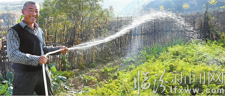 在师家沟,60岁的师瑞林与老伴管理着两座蔬菜大棚,他们种的西红柿、西葫芦、黄瓜等蔬菜常年有稳定可靠的销售渠道,两座大棚每年纯收入有5万多元,“因为自来水直接通到了地里,用水非常方便,我在大棚里铺了水肥一体化设施,水和肥料通过渗灌的方式进了地里,高效又省力。”师瑞林告诉记者,明年他打算再建3座育苗棚,争取家庭收入实现翻番。