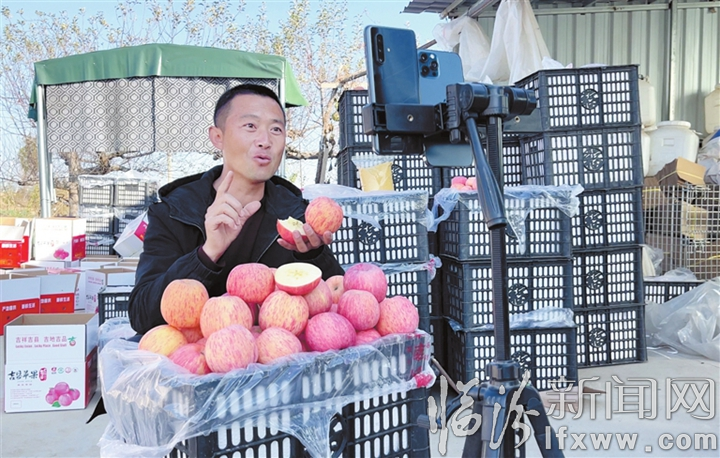 家住壶口镇社堤村的“80后”陈金鹏就是一名新晋苹果直播带货达人。2018年至今,他紧跟行业风尚发展电商产业,一年能销售苹果260吨。空闲时,他不忘学习其他网红大V的拍摄方法和带货技巧,把精华要点都记下来归纳成册,再结合自身实际实现成果转化。