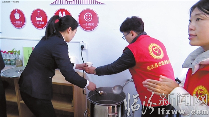 “冬季行动”中,曲沃农村商业银行工会和县志愿者协会联合发起了“一杯水”暖心服务活动,结合曲沃农村商业银行各网点,在县城内设立了10个“一杯水”暖心服务点,免费为户外劳动者供应绿豆汤、茶水、冰糖水、纯净水等饮品。各服务点设置了微波炉、桌椅、空调、医药箱、工具箱等基本设施,最大程度满足户外劳动者“歇歇脚”“吃一口热的”“喝一口暖的”等基本需求。服务点采取“全年无休”运行模式,在夏季提供降暑绿豆汤、冬季提供暖心红茶,让广大户外劳动者在辛勤劳动的同时,感受到工会组织的关心和关爱,体会到曲沃经济社会发展带来的实惠。