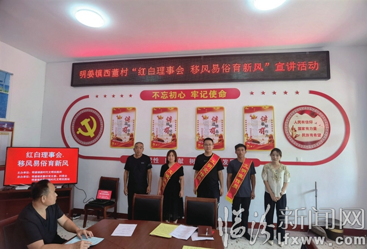 明姜镇扎实推动移风易俗,倡导喜事新办、丧事简办、厚养薄葬、勤俭节约的文明新风尚,实现村民自我管理、自我教育、自我服务。坚持打造移风易俗新阵地,依托西董村廉韵文化广场和廉韵中心,党员干部作表率,严格按照文明理事会章程、“七不准”规定以及婚丧嫁娶事宜申报流程,积极推进婚丧习俗改革,提倡喜事新办、丧事简办、节俭办事,健康文明的新风尚在全镇范围内蔚然成风。