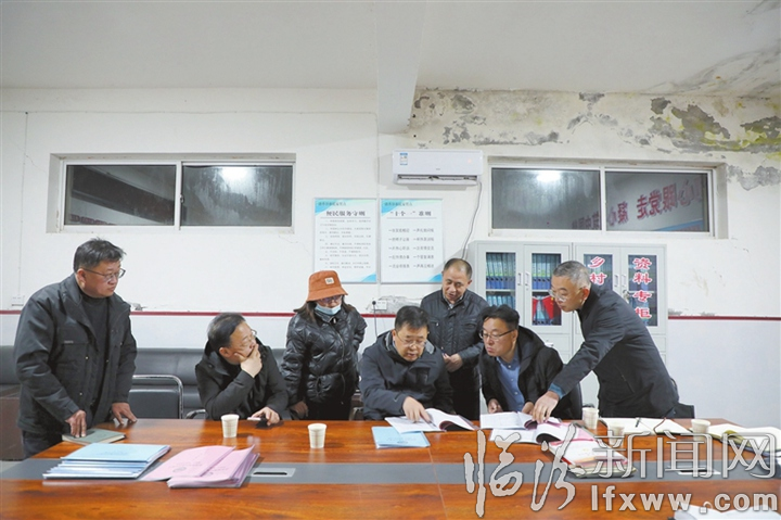 图为王林波在勍香镇移民新村现场查阅资料 付燕保 赵雪 摄