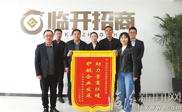 中联恒创(临汾)科技有限公司向临汾经济开发区招商引资服务有限公司送去锦旗