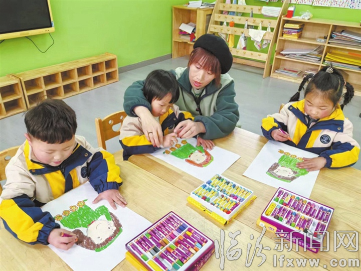 汇丰学校幼儿园学生用画笔描绘雷锋