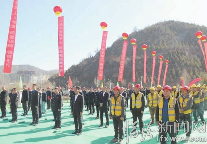 3月20日上午11时,在蒲县2024年重点项目集中开复工仪式现场,锣鼓声声,彩旗飘扬,大型机械整装待发,建筑设备全部到位,施工人员整齐列队,“爱临汾、聚蒲县、赢未来”和“抓安全、保质量、抢进度”的大字分列主席台两侧,蔚为醒目。蒲县四套班子领导、各乡镇党委书记、县直各系统党委主要负责人、相关企业和项目施工方代表参加。