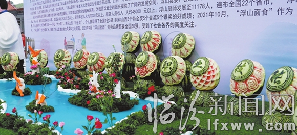 入口处,一组雕花西瓜引人注目,青红相间、栩栩如生的花纹簇拥着一个个大字,16个西瓜共同组成了一行“浮山县第六届厨师厨艺职业技能大赛”;集市上,上百个摊位比肩接踵,百余种小吃汇聚一堂,各有千秋;评委席,专业的评委们看厨艺,评菜品,公平公正地推选特色美食小吃……