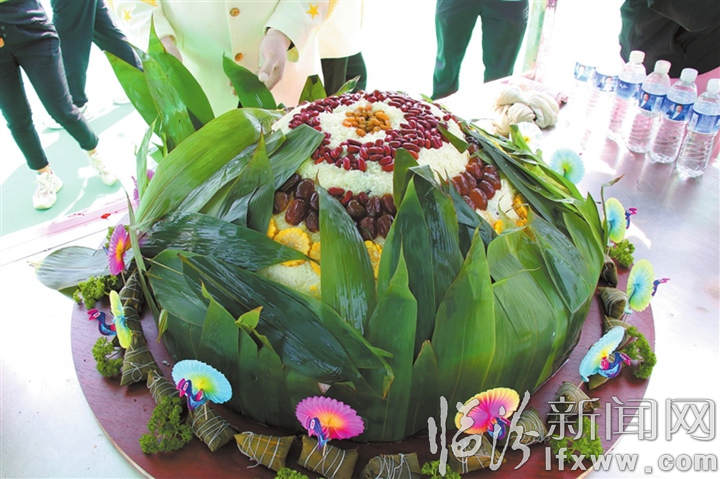 短短一个多小时,一片片粽叶、一粒粒糯米,在大家齐心协力的巧手下,一个个长达一米的“大粽子”成型了。