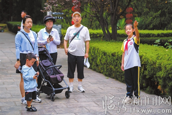 据悉,当天上午有15名红领巾讲解员走进景区开展志愿讲解。讲解过程中,他们不仅详细介绍了景点的历史背景、文化特色、建筑特点,还在讲解词中融入了生动、活泼的童言童语,讲解内容丰富、灵动且引人入胜。