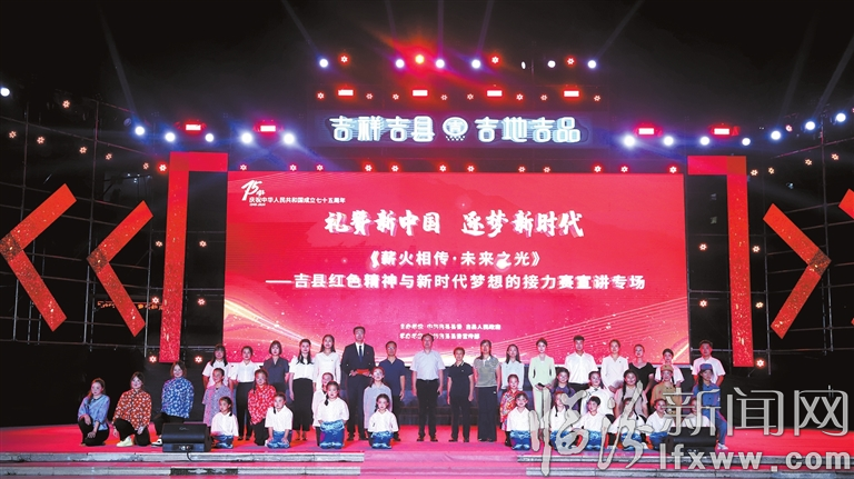 《薪火相传·未来之光》吉县红色精神与新时代梦想的接力赛宣讲专场活动共分为三个篇章。第一篇章《红色记忆·初心如磐》,讲述者们带来的节目《壶口岸畔的守望》《共产党员刘开明》《咱吉县亲人——赵凤琴》,把观众带回了烽火硝烟的战争年代,感受革命英雄的大智大勇。第二篇章《岁月长歌·家园筑梦》,讲述者们带来的节目《村口那排柿子树》《绿满吉州——红旗飘扬》《西红柿红了 村民富了 孩子们笑了》,让观众们回首了吉县人民奋斗与前进的历程,激发吉县人民对美好生活的向往与追求。第三篇章《多彩画卷·吉县新篇》,节目《妙手仁心,患者的“手”护神》《让更多“纸上权益”变成“真金白银”》《遇见黄河 读懂中国》,让观众感受到了在吉县高质量发展的新时代中,吉县人民在不同领域作出的突出贡献。