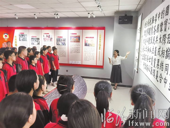 10月5日,洪洞县新时代文明实践中心工作人员与学生们集体齐唱《歌唱祖国》,用激昂的歌声表达对祖国的热爱与美好祝福。活动中,大家一同起立,随着音乐的节奏挥舞着手中的国旗,情绪激昂,高声歌唱,脸上洋溢着自豪的笑容。