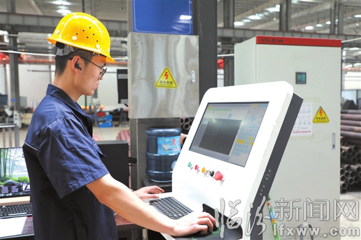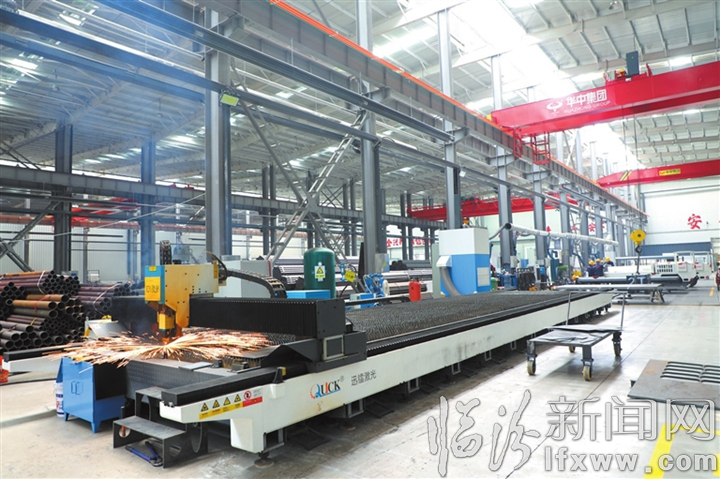 在该公司的各个生产车间,工人师傅们各司其职,一派热火朝天的生产场景。车间里弥漫着金属特有的冷冽气息,技术人员操控着激光切割机以精准的轨迹在钢板上游走,顿时火花飞溅,短短几秒钟之后钢板迅速成型。技术人员直言:“有了这台‘钢铁裁缝’,就可以在很短的时间内切出我们想要的形状,而且切口表面光滑,无需二次加工就可直接焊接,有效降低了加工成本,提高了生产效率。”
