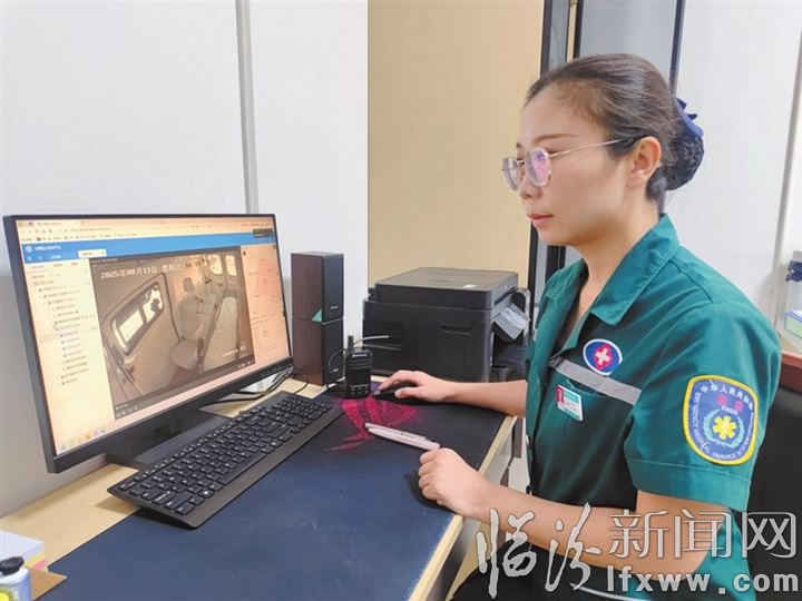 8月13日,走进洪洞县人民医院120指挥中心,数据员闫跃华正手拿对讲机,在车辆运行监测平台前进行远程监测。监测平台的视频中,一辆120救护车正载着患者赶往医院,闫跃华根据随行护士和大夫提出的要求,对下一步入院工作进行安排,争分夺秒争取抢救时间。
