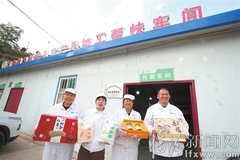 9月8日,在大宁县道教村卫道缘品农产品加工帮扶车间,村民在展示特色农产品。近年来,大宁县道教村加大在外人才回引力度,先后有一批在外经商务工青年回村,大力发展一二三产业,延伸产业链,提升农副产品附加值,支持返乡青年创业,将扶贫加工车间租赁给他们,共同注册“卫道缘品”品牌,用于发展农产品加工,带动村集体和农户共同发展。