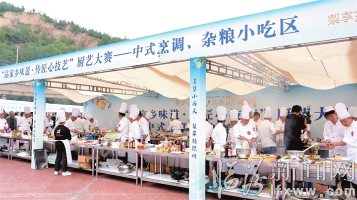 美食大赛活动还设置了特色美食品鉴区域,各餐饮团队在此展示菜品,供现场大众评审品鉴,吸引了众多游客前来品尝。来自湖北的游客王浩轩对郭帅竖起大拇指:“本来是专程游小西天,没想到在景区门口碰到美食大赛,一次性品尝了很多隰县美食,更绝的是厨师们用玉露香梨做菜,梨香融进菜里,一点不腻,值得大力推广!”郭帅擦着手感慨:“这比赛不光是比手艺,更是把咱隰县的风味和文化往外传,让更多人知道咱这儿的好味道。”