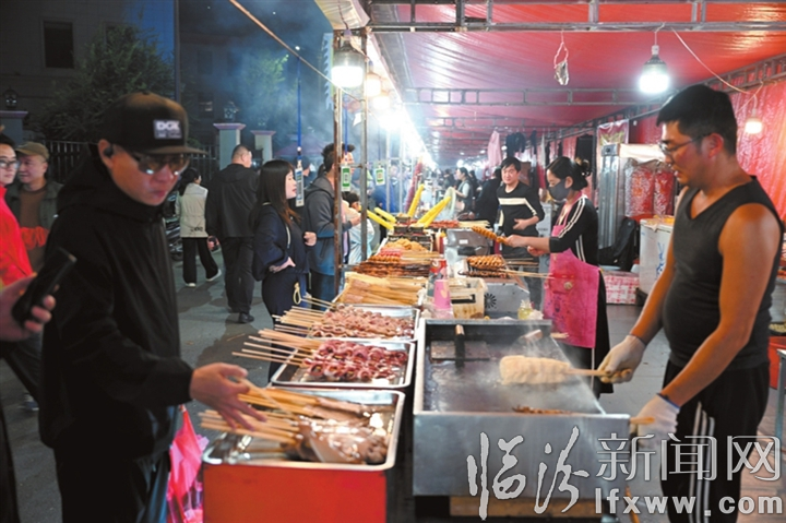 每晚华灯初上时,“蒲味市集”数十个美食摊位迎来第一批食客,蒲县八宝、特色炒鸡等经典美食香气四溢,吸引了众多游客前来品尝。摊主们热情吆喝,游客们大快朵颐,热闹的氛围尽显节日的烟火气息。