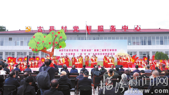 当天的古县乡,在一阵气势磅礴的《威风锣鼓》声中被唤醒。锣声铿锵,鼓点激昂。舞台旁,来自全县37位果农,将他们最得意的“果品”精心摆盘,依次呈上。