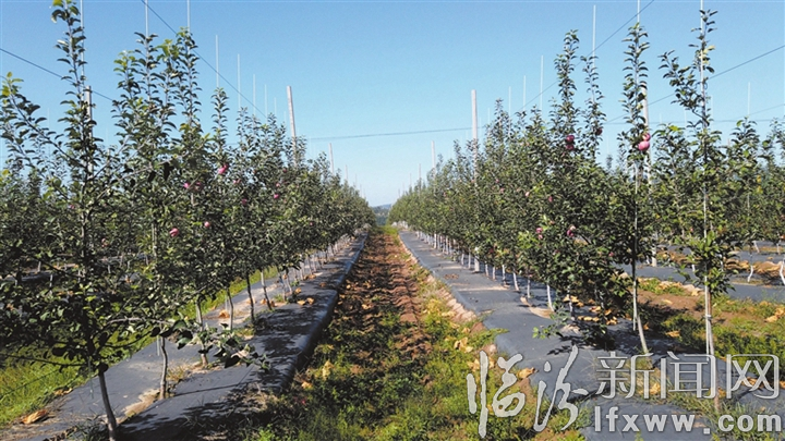 传统乔化苹果园为避免树冠交叉、争夺阳光,株距需预留到3—4米,行间距一般都在4—5米,每亩仅能种植果树30余株,加上树下空地难以利用,地上地下都被乔化树庞大根系和开阔树冠“闲置”,土地实际用于“开花结果”的比例不足60%。