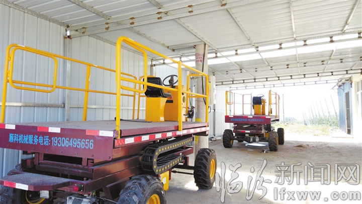 移动式升降平台电瓶车,改变了以往攀梯采摘的工作模式,修剪、摘果、运输一体,方便又安全。