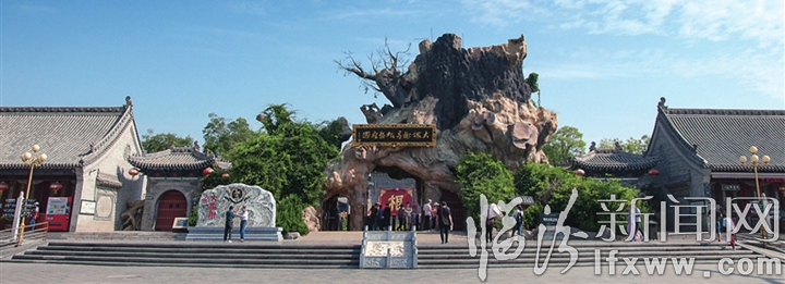 6月25日上午,在斜风细雨中记者走进大槐树景区,暂时远离了仲夏的燥热,感觉甚是惬意。一旁陪同的洪洞大槐树寻根祭祖园有限公司办公室副主任师希敏介绍,洪洞大槐树寻根祭祖园由“移民古迹区”“祭祖活动区”“民俗游览区”“汾河生态区”四大主题板块组成,拥有“根雕大门”“根字影壁”“祭祖堂”“一代大槐树(仿)”“古大槐树处”“二三代槐树”“石经幢” 等文化景点60余处,是全国以“寻根”和“祭祖”为主题的唯一民祭圣地,被海内外数以亿计的大槐树后裔当作“家”,称作“祖”,看作“根”。现如今已成功接待了成千上万的大槐树后裔回乡祭祖。