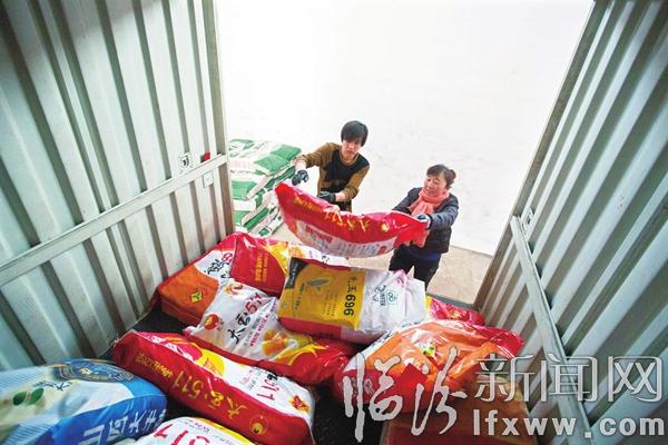 临汾新闻网讯 眼下正是春播时期,购买种子及播种工具成为农民心头的一件大事。临汾经济开发区尧乡种业实行上门服务,将种子和播种工具运送至蒲县、乡宁等地的商家及农户手中,为广大农户提供了便利。图为工作人员正在装车运送。 记者 郑远飞 摄