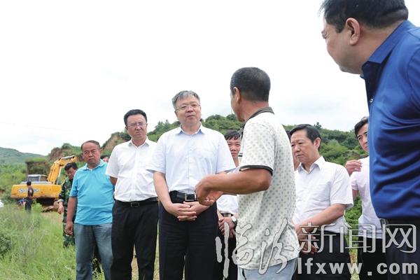 图为岳普煜在汾西县堡落村骨干坝调研防汛工作开展情况。记者 郑远飞 摄