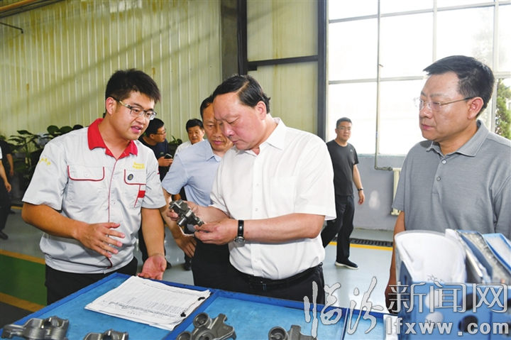 图为徐广国在山西华翔集团股份有限公司调研。记者 赵俊堂 摄