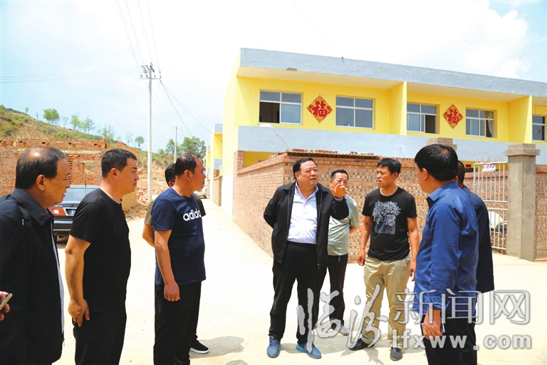 市人大常委会副主任、汾西县委书记任天顺在勍香镇调研易地扶贫搬迁工作。侯建兵 摄
