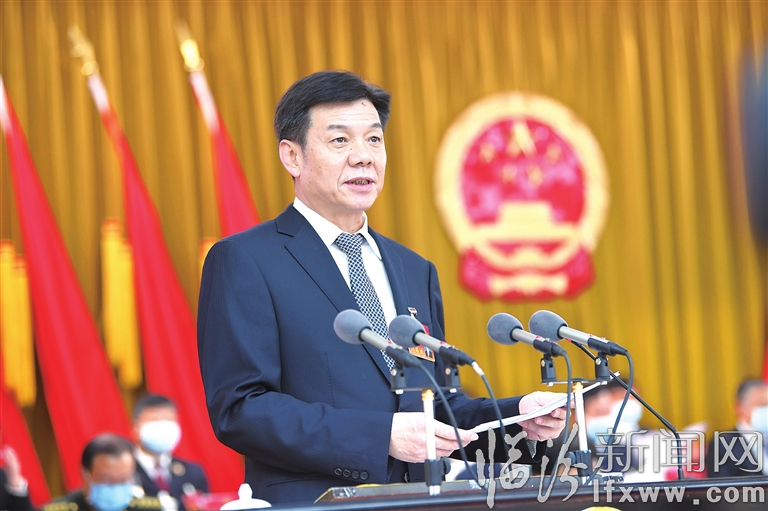 4月19日,陈小洪作市人大常委会工作报告。 记者 赵俊堂 摄