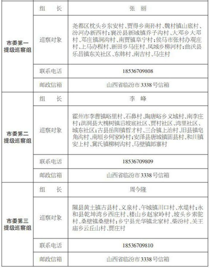 巡察期间,市委巡察组设有专门联系电话、专用邮政信箱,巡察组受理电话的时间为工作日上午8:00-12:00,下午14:30-18:30。根据巡察工作要求,市委巡察组主要受理反映被巡察党组织领导班子及其成员、下一级党组织领导班子主要负责人和重要岗位领导干部问题的来信来电来访。其他不属于巡察受理范围的问题反映,将按规定由被巡察党组织和有关部门认真处理,欢迎社会各界干部群众反映情况。(贾聪)