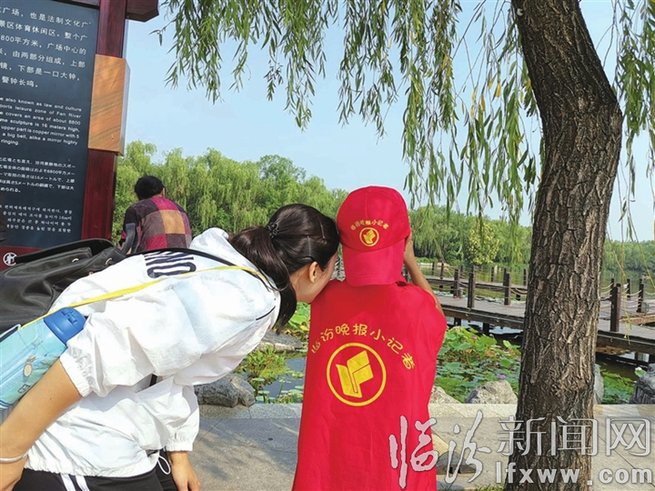 路边的小草、荷叶上的露珠、花朵上的蜻蜓、散步的人们都成了小记者们镜头中的“主角”。