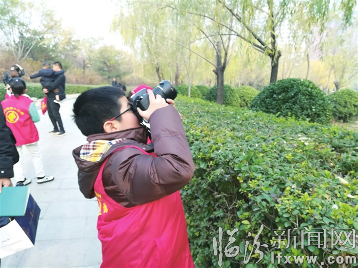 临汾新闻网讯 掌握摄影技巧,争当全能小记者。11月23日,80余名临汾日报小记者分批走进古城公园,在小记者团老师的带领下,学习摄影知识,寻找“冬”的踪迹。
