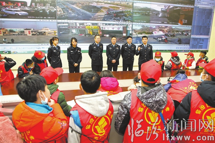 接着,小记者们跟随民警阿姨的脚步,先参观了新型犯罪研究中心,后去往相邻的一个大厅。只听,大家“哇”的一声,不由被眼前呈现“多宫格”的大屏幕所震撼,继而惊喜地发现,“看到我们学校了”“那条街离我家不远”“去生龙国际逛街的人好多呀”……