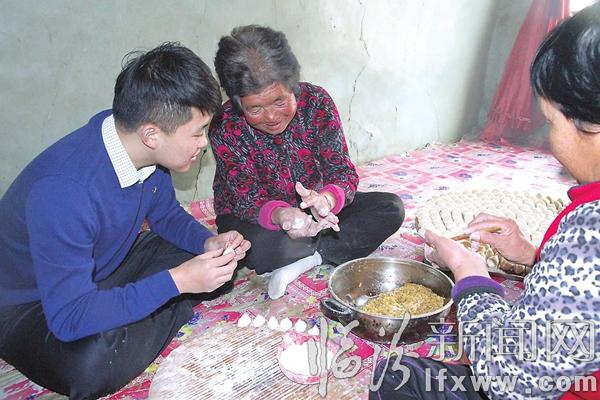 郭若桥坐在炕头,一边包饺子,一边笑着说:“大妈,你看我这饺子包得好不好?”霍芳莲说:你为村里办的事儿都好,就是这饺子包得不好,大妈教你包饺子。”