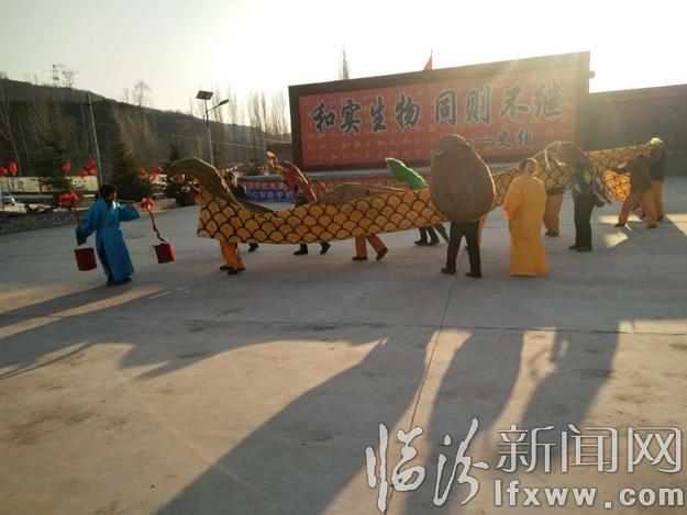 “以前听村子里的老人说,耍五毒可以辟邪驱灾,为村子来年的发展迎来好兆头。”今年79岁的崔月回忆说:“因为很多原因,耍五毒表演已经中断了40余年,能再次看到,还能参与表演,我太激动了。”虽然崔月年近80,但是她手脚灵便,甚至可以踢高抬腿,在耍五毒中扮演丑角,负责搞笑逗乐。耍五毒需要6到8个人舞蟒蛇,四个孩子分别扮演蝎子、蜈蚣、蟾蜍、壁虎,引蛇人负责将蛇引出,继而上演五种动物之间的相生相克。负责节目编排的张有伟介绍说节目排练了几个月,才有了现在的雏形。“这是一门口口相传的技艺,一辈一辈都是从老人那里听来的,几乎没有传承人。”张有伟说自己今年67了,腰腿不好,很难在继续这门技艺了,只能作为锣鼓队的一员为他们打节拍、奏乐点。“今天看到耍五毒找回了小时候过年的味道,这才是我们的年,老一辈的东西应该被保留。”