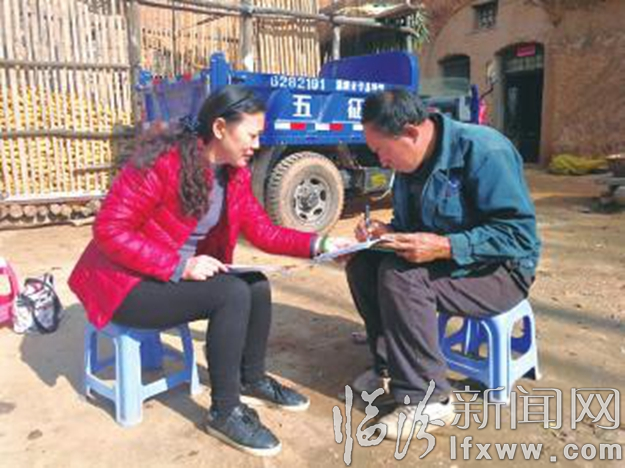 该局干部为对接户讲解脱贫政策,填写帮扶信息。
