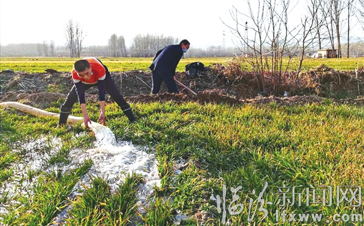 临汾新闻网讯 开春以来,襄汾县襄陵镇西院村开动四眼机井,对全村八百余亩小麦进行浇灌。图为村民陈香河正在浇地。
