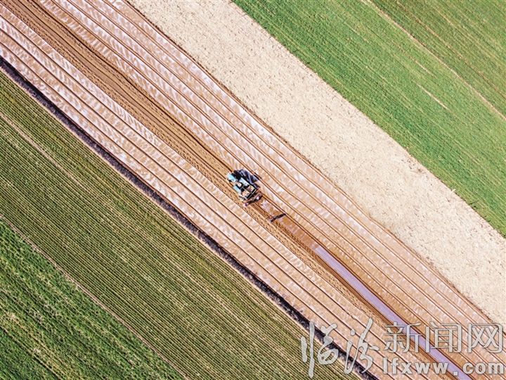 “这阵子,疫情防控是关键。春耕容不得一丝迟缓。现在农业发展好了,处处都是机械化。”张丽霞指着地里覆膜机介绍说:“今早8时开工,这块近8亩药材田覆膜,也就个把小时就完工。”为确保人与人之间的距离。张丽霞想出了新招:在培土盖膜时,人与人之间分时进行,确保距离在3米以上。