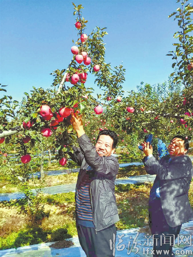 临汾新闻网讯 十月二十二日,隰县阳头升乡岢岚金村高有喜苹果采摘园来了几位太原客商,他们对当地优质苹果赞不绝口,以每公斤五元八角的价格将十亩苹果全部订购。近年来,隰县县委、县政府通过大力发展梨果产业,助力农民脱贫攻坚奔小康。(石书民)