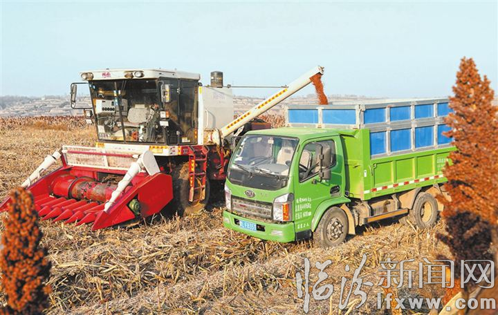 临汾新闻网讯 初冬的阳光朗照在宽阔平展的塬面上,也照在成片成片的高粱地里。高粱秆枯黄了,高粱穗干透了,看着收割机在高粱地里作业,秸秆碎粉还田,高粱粒粒归仓,农民脸上露出了喜悦的笑容。