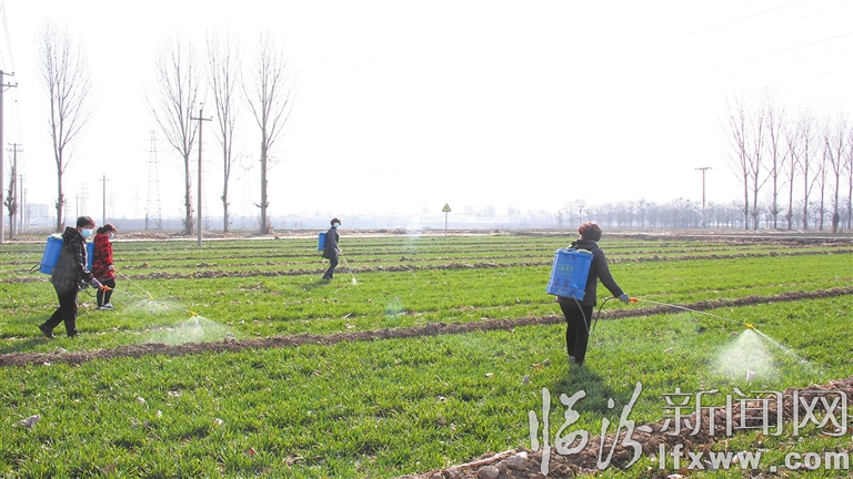 临汾新闻网讯 当下正值春耕备耕时节,我市田间地头一派农忙景象。图为侯马市张村乡西里村村民在麦田间喷洒农药,确保今年夏粮丰产丰收。(陈炯竹 摄)