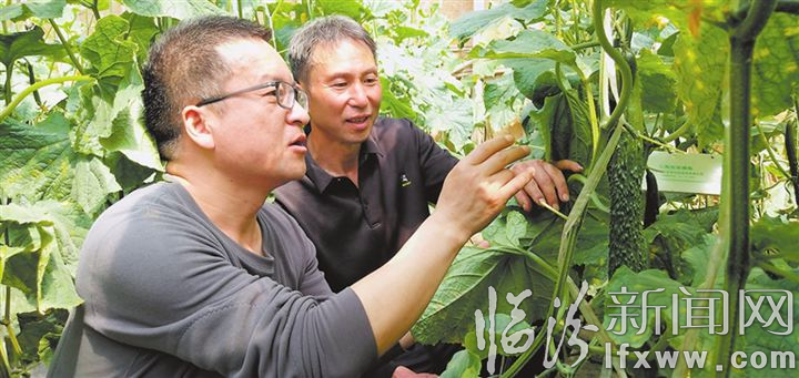临汾新闻网讯 当前,正是大棚蔬菜大量上市的季节,襄汾县农业农村局技术员走进新城镇陈郭村的蔬菜大棚,指导菜农开展蔬菜种植。图为技术员孙海峰在黄瓜大棚内为菜农提供技术服务。