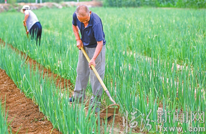 临汾新闻网讯 连日来,襄汾县陶寺乡张再村种植的大葱进入生长的关键时期,当地村民正忙着对大葱进行除草、培土、浇灌等田间管理,为增产丰收打好基础。图为村民在进行除草培土作业。