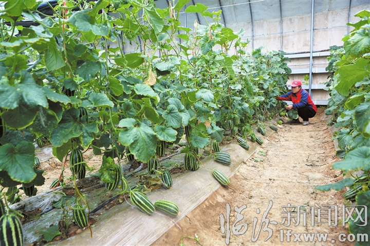 临汾新闻网讯 5月3日,在尧都区段店乡北练李村尧勤田园休闲农场,瓜农正忙着给甜瓜进行打叶管理。
