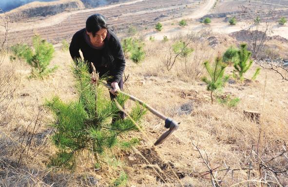 眼下,正是植树造林大好季节,襄汾县将荒山绿化作为全省林业生态县建设的一项重要内容,加大力度抓紧抓实、抓出实效,以实实在在的行动和成效推动美丽襄汾建设。图为专业造林工人正在对该县的龟山进行绿化。 焦玉龙摄
