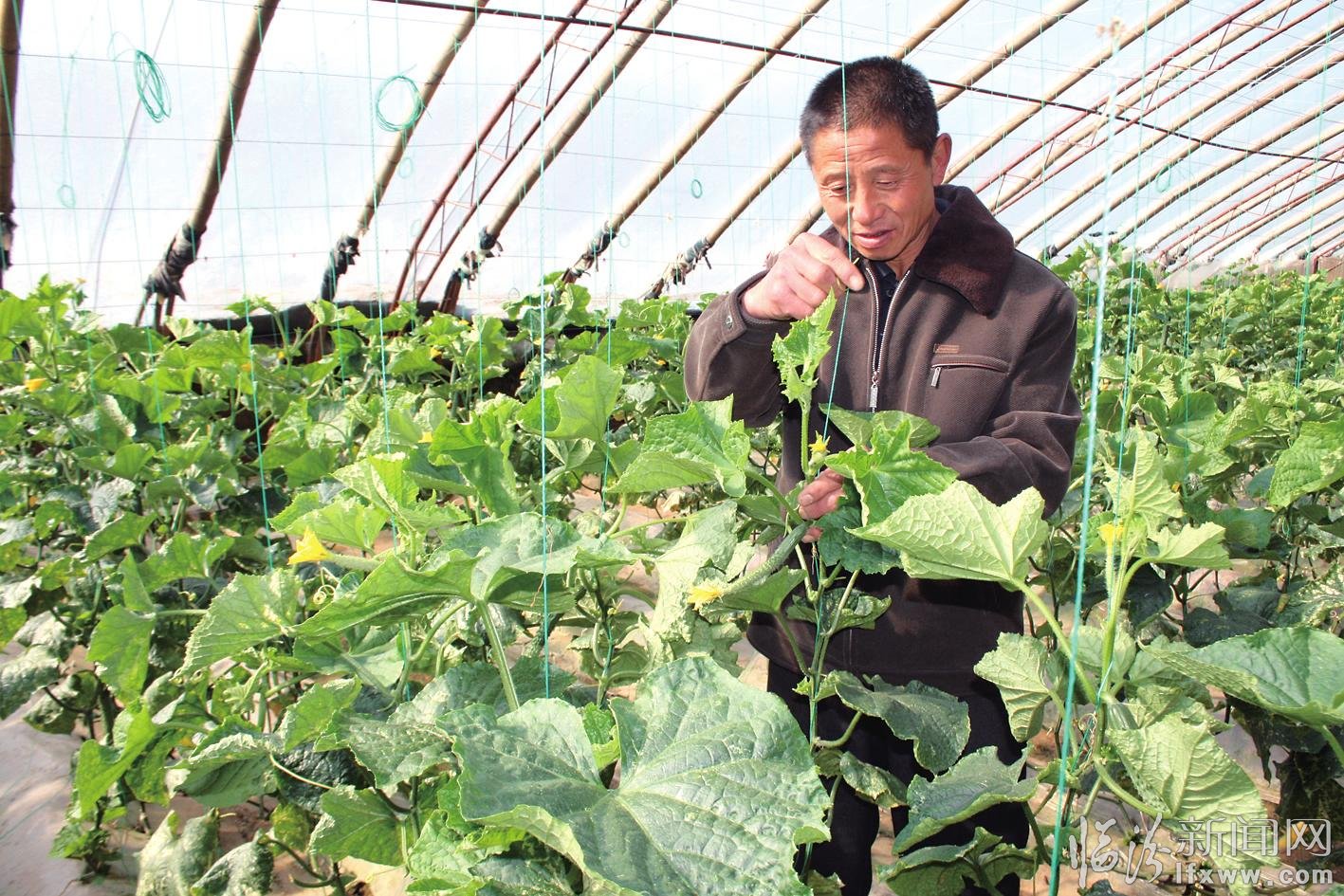 近年来,浮山县积极调整产业结构,大力发展设施蔬菜产业,设施蔬菜产业已成为带动浮山农民增收致富的主导产业。目前,该县设施蔬菜总面积达到1.14万亩,总产量达4037万公斤,年销售收入达1.18亿元。图为该县张庄乡设施农业示范园区菜农卫志虎正在管理黄瓜苗。