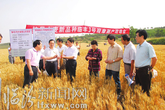 由国家小麦工程技术研究中心、省种子管理站等相关专家组成的验收组现场对小麦所培育的旱地小麦品种“临丰3号”和水地小麦品种“临汾8050”分别进行了实地测产验收。