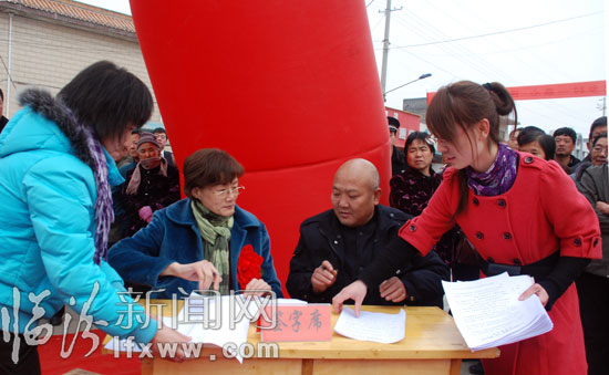 图为帮扶工作队和受帮扶村签定责任状