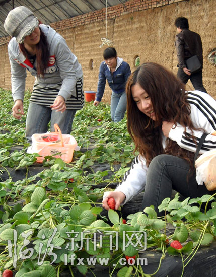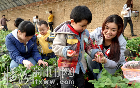 临汾新闻网讯 “妈妈,这草莓是怎么种出来的呢?这草莓比书本上的漂亮多了!”近日,在襄汾县新城镇城南村高端农业采摘园的草莓大棚里,一颗颗娇嫩的草莓在瓣瓣绿叶映衬下,显得鲜红欲滴,吸引着不少市民带着孩子前来采摘草莓。 记者 苏亚兵 摄