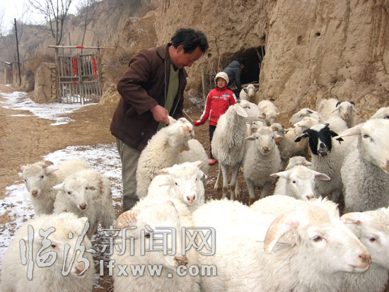 图为坦达村农民冯连晨正在对羊进行体检。